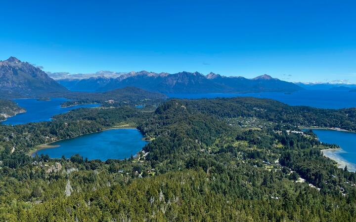 Zgodnji jutranji let na jug v Patagonijo. V nacionalnem parku Bariloche leži na obali jezera Nahuel Huapi istoimensko mesto Bariloche. Urejeno mesto obkrožajo dvatisočaki Cerros Catedral, Lopez, Nireco in Shaihuenque, ki ob lepem vremenu poskrbijo za kuliso z razglednic. Pokrajina nekoliko spomni na Slovenijo, morda ravno zato živi tu močna skupnost Slovencev. Bariloche velja tudi za argentinsko prestolnico čokolade.